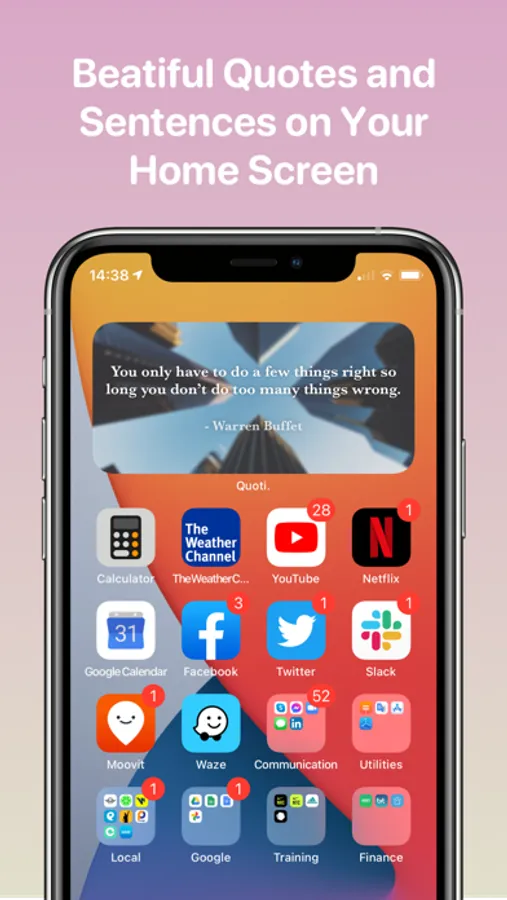 Quotes on your Home Screen! With Quoti. you can browse awesome quotes from plenty of users around the world or create your own stunning personal quote and have it on your home screen!