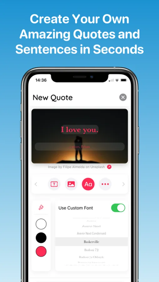 - Create your own beautiful quote with thousands of amazing high quality photos from Unsplash, use unique fonts and much more awesome customizability.