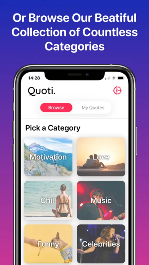 - Browse many categories such as motivation, love, music and much more. Today it's easier than ever to get boosted with a strike of motivation right on your home screen :)