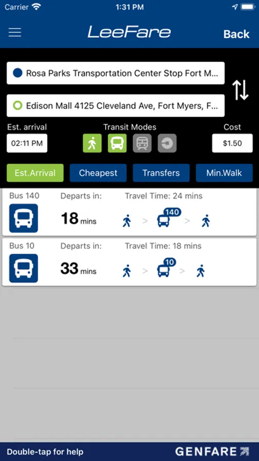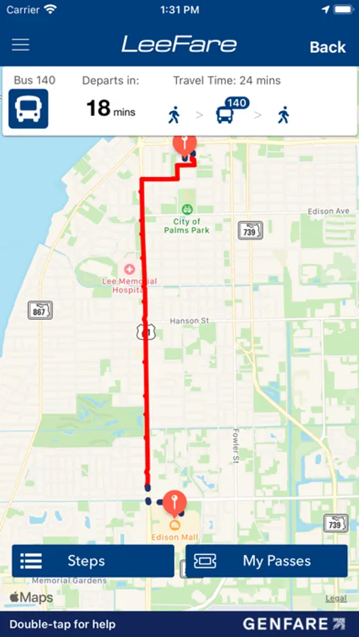 Using the LeeFare mobile app is a convenient way to purchase bus fares, manage your TropiCard balance and plan bus trips. App users may also access route information and important transit alerts related to bus stops, routes, detours, and holiday specific service modifications. Features include: