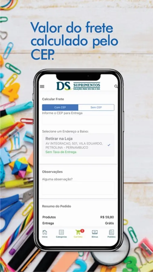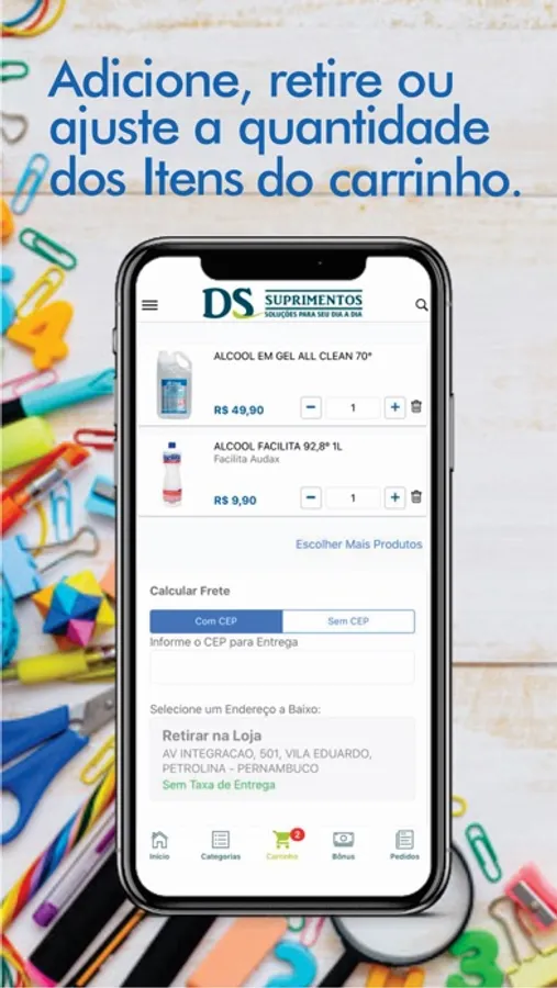 Com o app DS Suprimentos, você recebe seu produto no conforto da sua casa. Nossa entrega é rápida e para todo o Brasil.