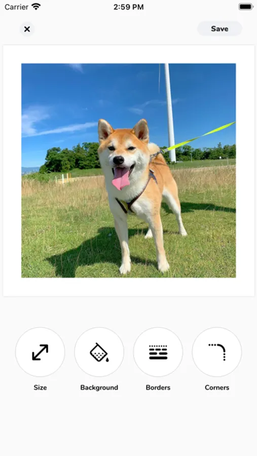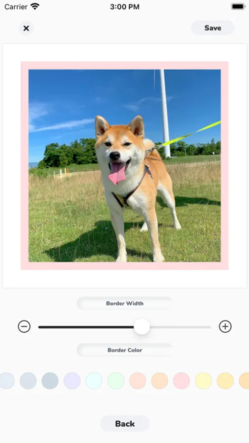 - Add borders to photos, customize your border size and color.