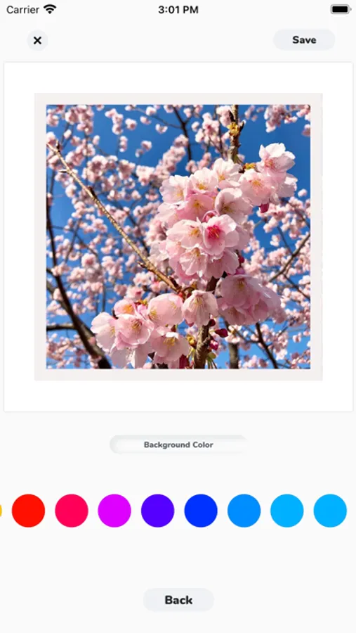 - Customize the size of your photo and change the background color.
