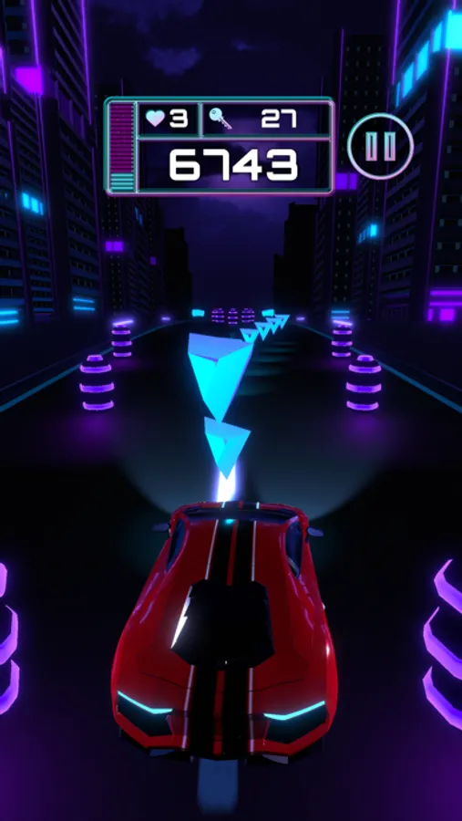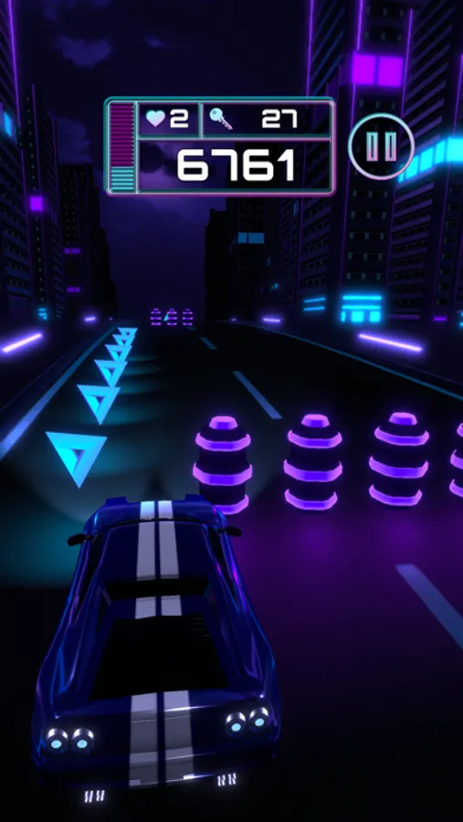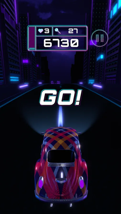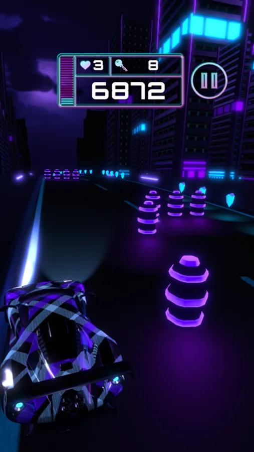 Collect objects to fill your boost meter and avoid obstacles as you drive through a neon, retro style city, in custom cars!