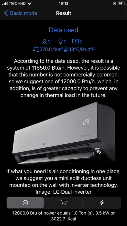 3. Equivalences to know the BTU, kW, Kcal and Ton per hour of the calculated air conditioning or heat pump.