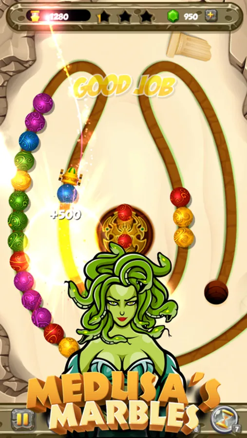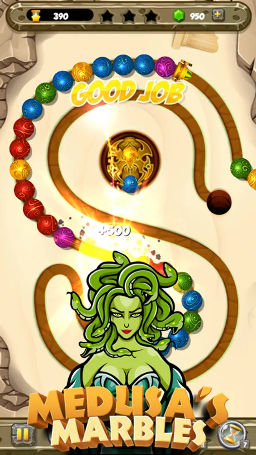 Medusa's Marbles are coming & it's your job to get rid of them with the bow of the gods located in the middle of the board. Match 3 colors together to wipe them from the board, match more than that for bonuses. Use boosters if Medusa's Marbles are getting closer to the hole.
