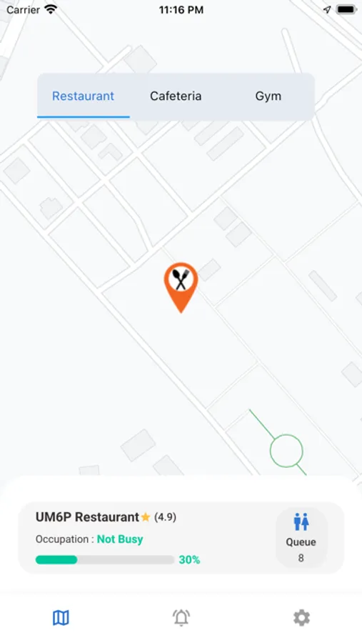 No Waiting UM6P App is an internal assistant for all Mohammed VI Polytechnic University's students and staff to plan and choose the best moment and the best facility (between different restaurants or Gym spaces, for example) before visiting, based on real time data of different occupations, queues and waiting times.