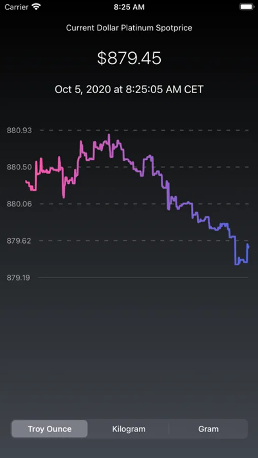 This app was specifically designed for Platinumbugs with a watch companion App. This app can display a complication that shows the price of platinum live on your wrist. It also indicates if the trend is moving upward or downward.
