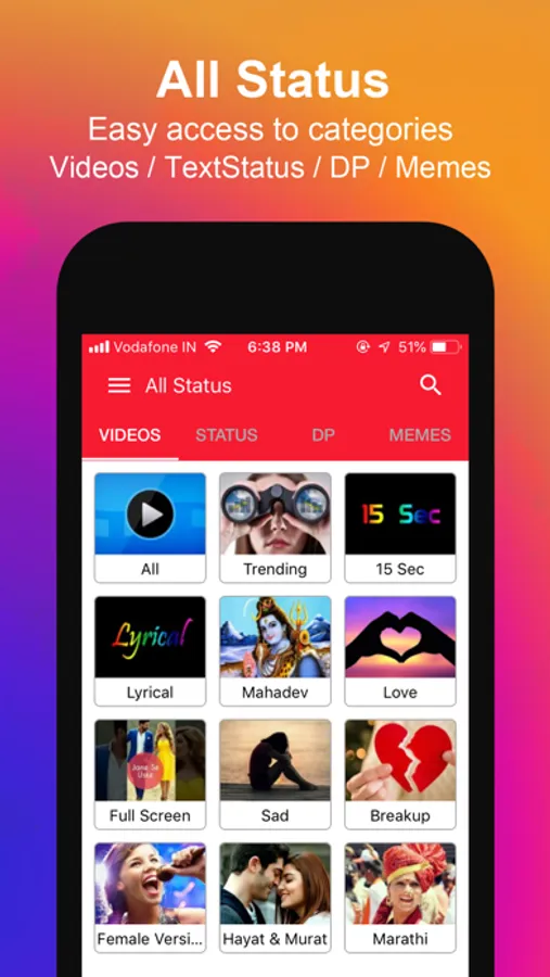 Are you addicted of Video Status, images, text, DP’s and Memes for your social accounts stories? Now, you don't need to search on internet for all that.