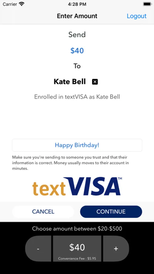 The worlds first app delivering real time VISA transactions instantly to your text message contacts that can be spent upon receipt.