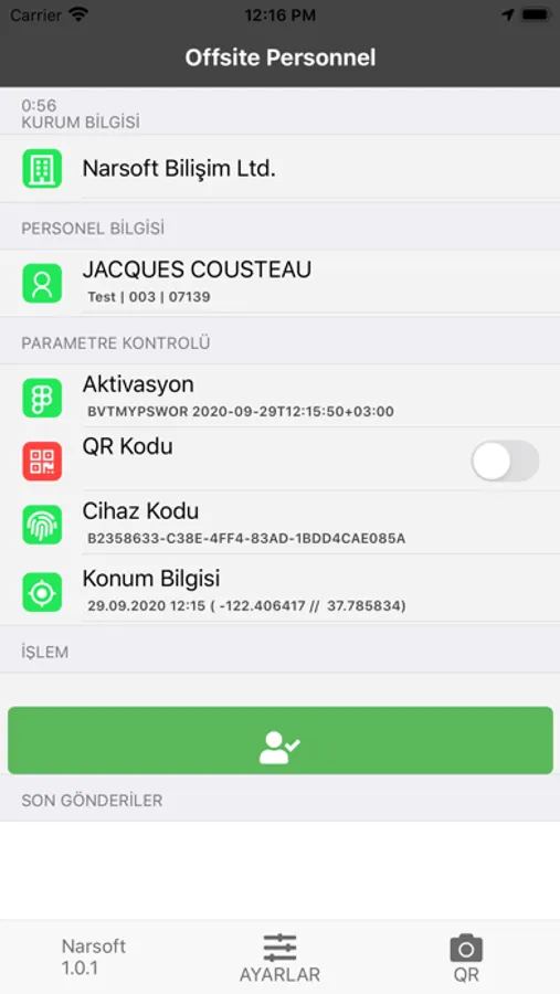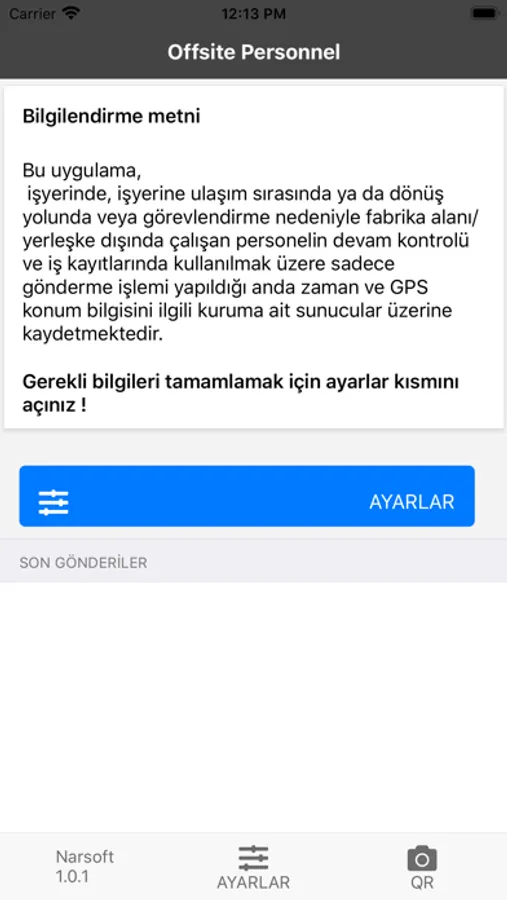 Bu uygulama, işyerinde, işyerine ulaşım sırasında ya da dönüş yolunda veya görevlendirme nedeniyle fabrika alanı/yerleşke dışında çalışan personelin devam kontrolü ve iş kayıtlarında kullanılmak, Toplantı/yemekhane gibi ortak alanlarda bir arada bulunanları saptamak üzere sadece gönderme işlemi yapıldığı anda zaman ve konum bilgisini ilgili kuruma ait sunucular üzerine kaydetmektedir.