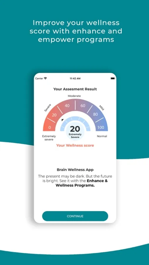 Using the Brain Wellness App is simple, all you need to do is sign up and answer a few questions that enable us to generate your wellness score. It is a number, ranging from 0 - 100, that describes where you’re at mentally and emotionally.