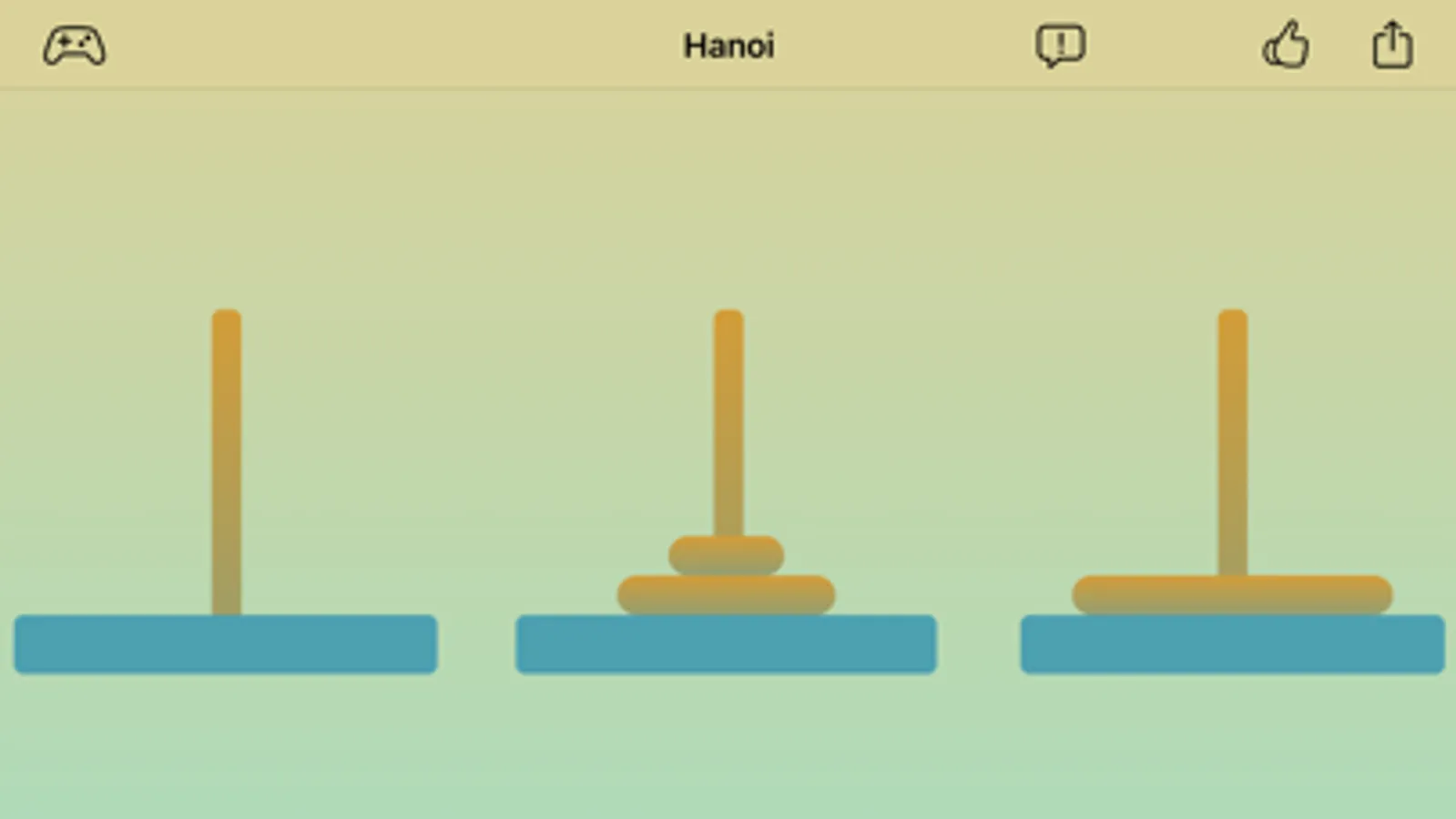 Each move consists of taking the upper disk from one of the stacks and placing it on top of another stack or on an empty rod.