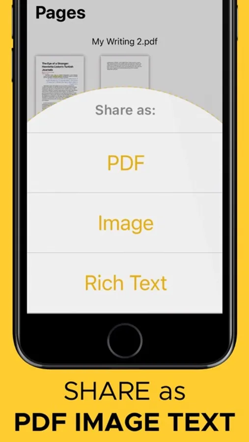 - Share as PDF, image or text - Share scans as PDF, image or rich text. Just select the file you want to share and share it in the desired format.