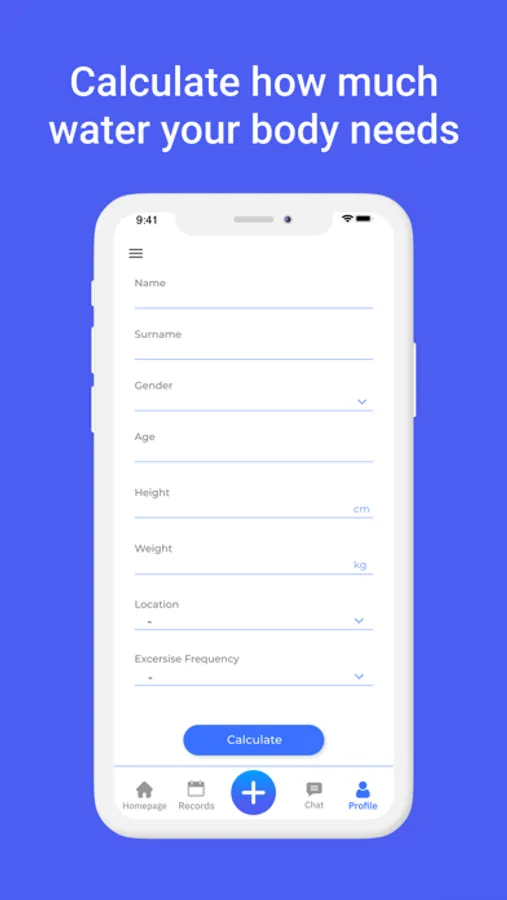 1. Enter the information that is asked to complete your profile to set your daily water intake goal.