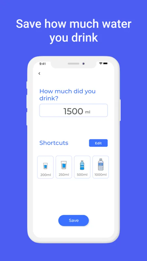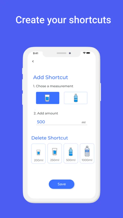 You can preset specific glass or bottle measure sizes in the app that you consume often. This way you can enter records of your water intake faster with one click.