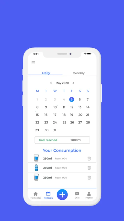 4. See your daily or weekly consumption in your records.