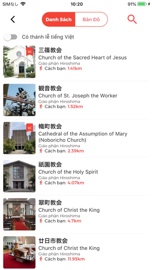 Ứng dụng tìm nhà thờ Công Giáo tại Nhật Bản xung quanh bạn.