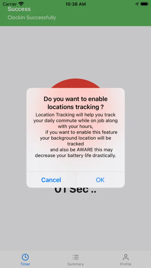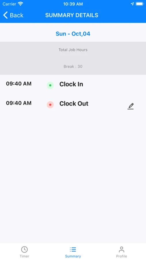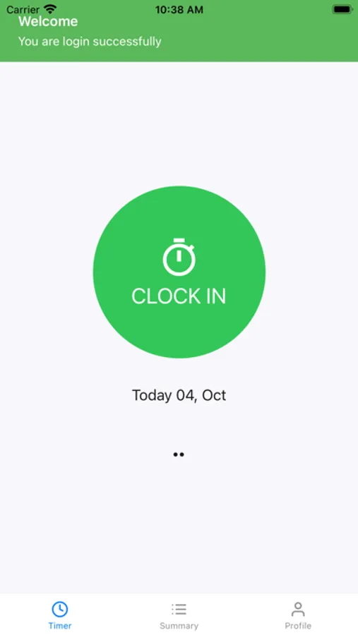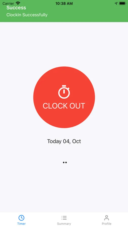 To start your day just press “Clock In” button and your day start time will be save along with your current location (location will only be saved if you allow).