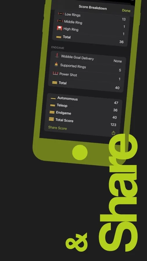 Share your top scores with your team members, friends, etc. Be proud of your robot and share what you have made using the in-built share feature in Skor.
