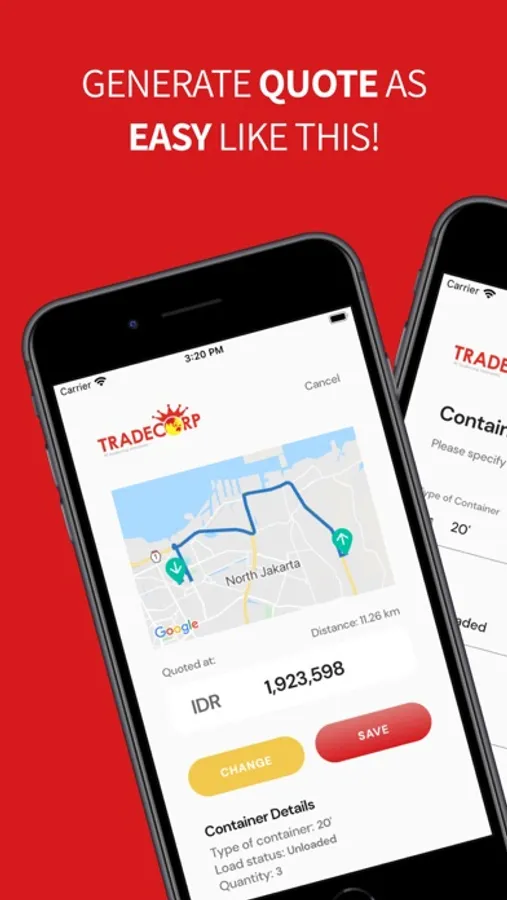 PT Tradecorp Indonesia's mobile application to generate trucking quotes for the sales team.