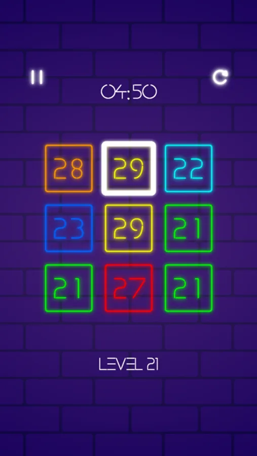 Your task is to make the numbers of the same value in all blocks. Swipe the screen to move the white frame. Move the frame until you get a certain number.