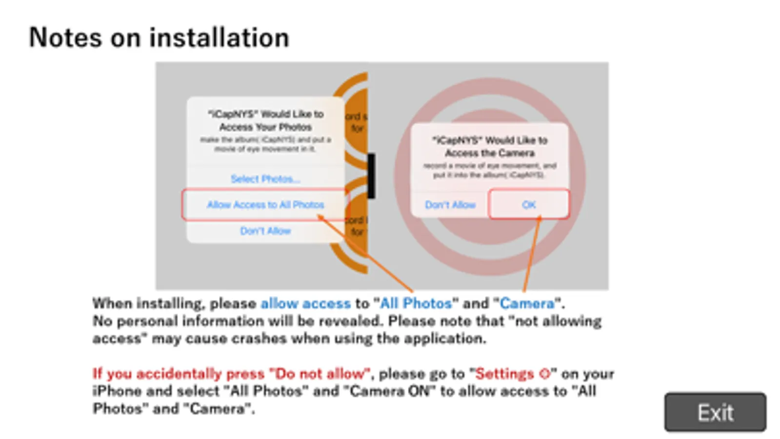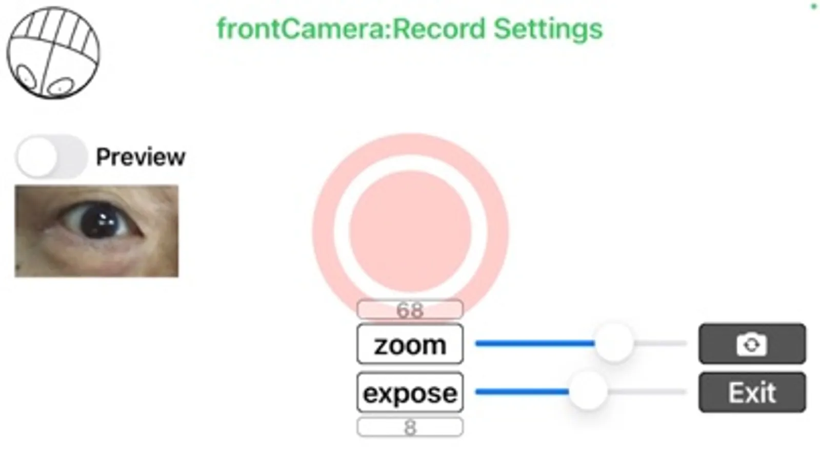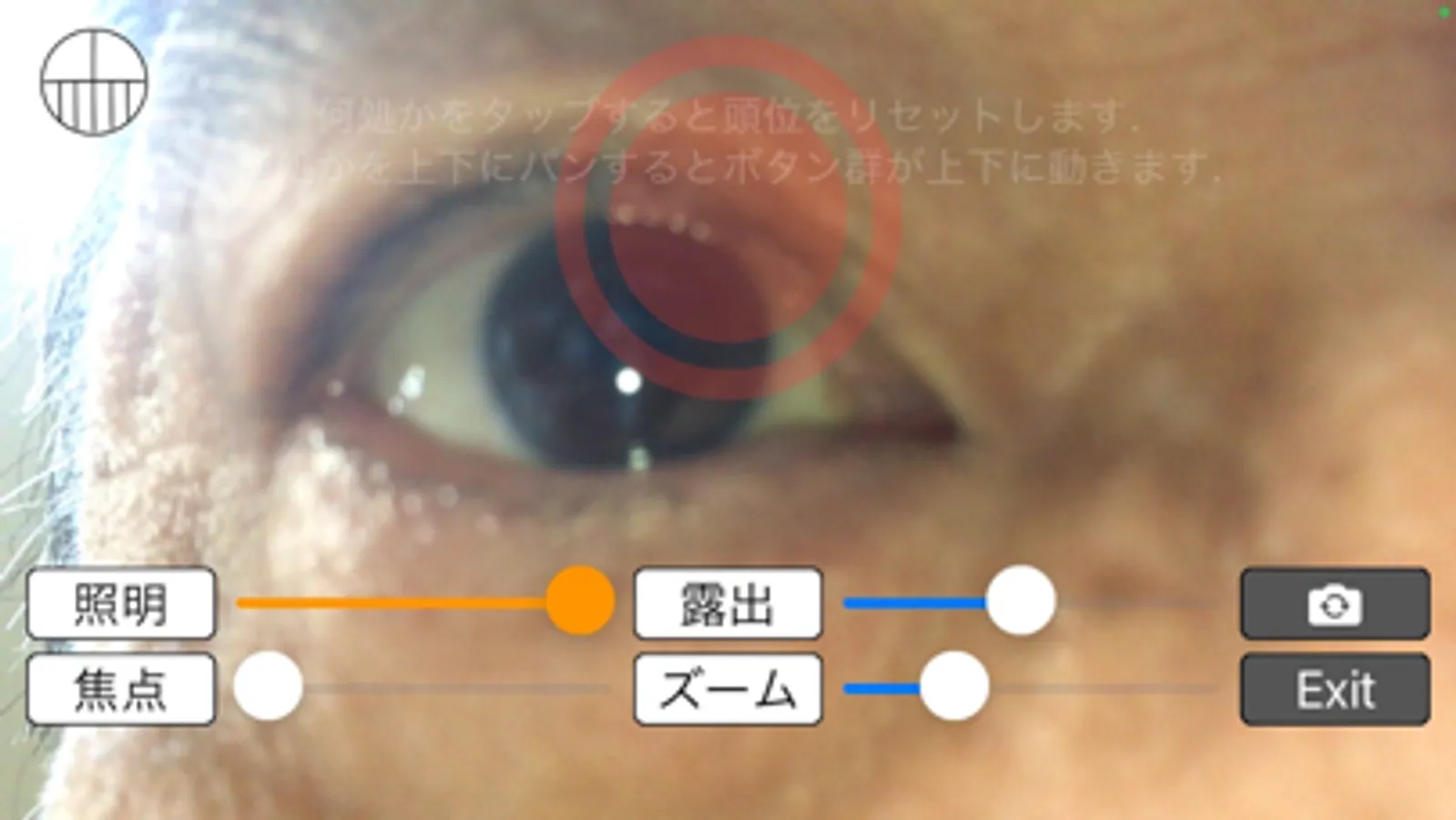 With a back camera and an iPhone fixture, you can shoot nystagmus images without shaking. Fix the iPhone in front of the eyeball and record the nystagmus. You can keep the settings such as LED brightness and focal length. You can set the LED to the lowest brightness, but it's still too bright on some models. In that case, cover the LED with a blank sheet of paper and adjust the amount of light.