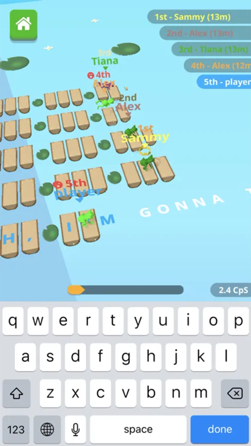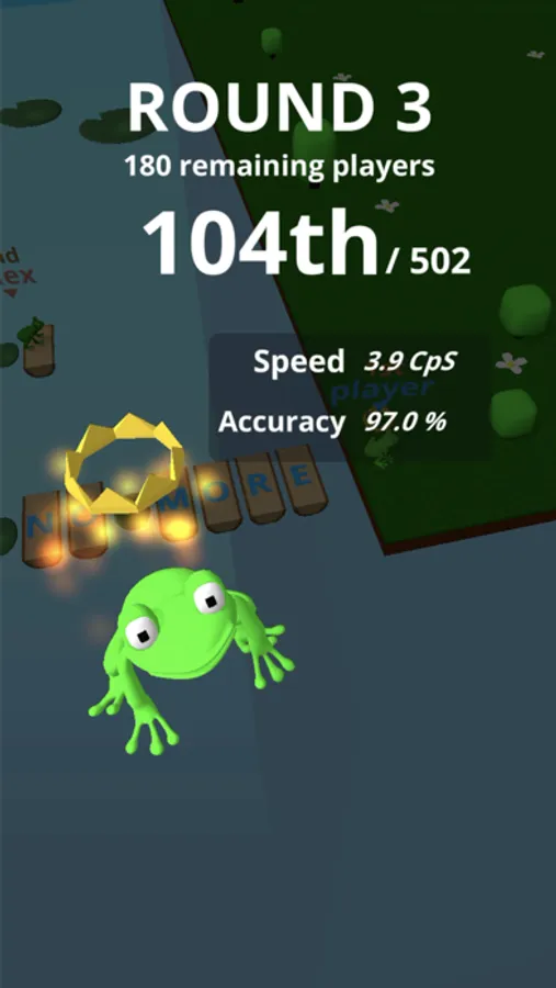 Help your frog across the river in the first place to go to the next round! You will play with over 500 other players around the world! Complete 10 rounds continuously to win in final!