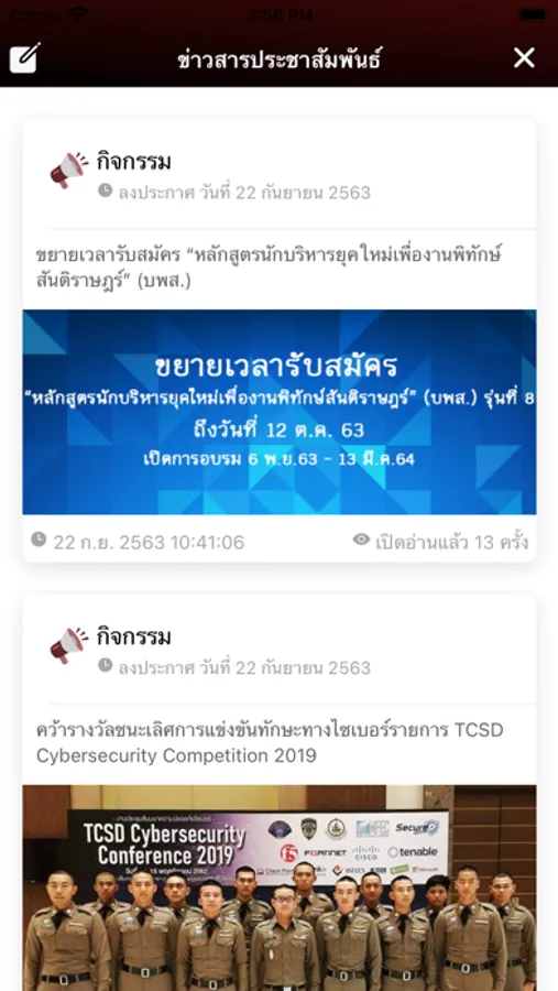 ระบบแจ้งข่าวสาร กิจกรรม และรายงานต่างๆ