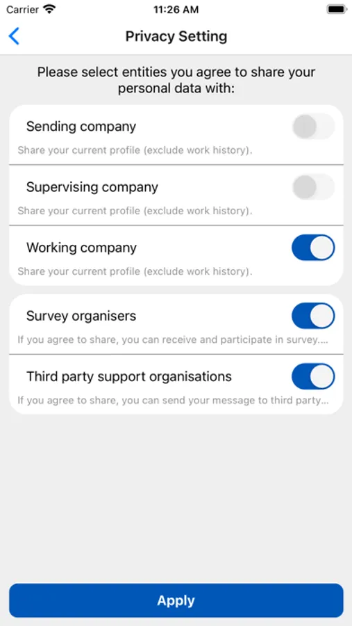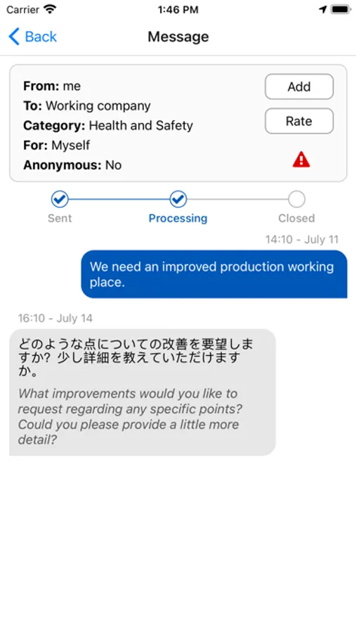 Additionally, working company and CRT can also send messages to user to inquire about their work life matters and express their care for the employees.