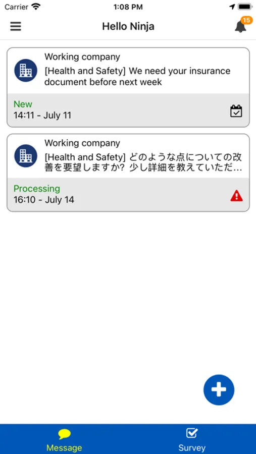 Moreover, user can express their opinions by participating in surveys (Survey function), allowing survey conductors to gain a better understanding of the current situation of foreign workers in Japan. Based on the survey results, appropriate actions can be implemented to enhance the current situation and provide better support for foreign workers in Japan.