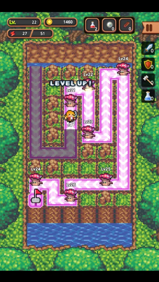 "No baek Hero" is a puzzle game in which the main character "Aijit III" draws a path to reach the destination while fighting for monsters to level up, searching for treasure chests, or performing NPC quests.