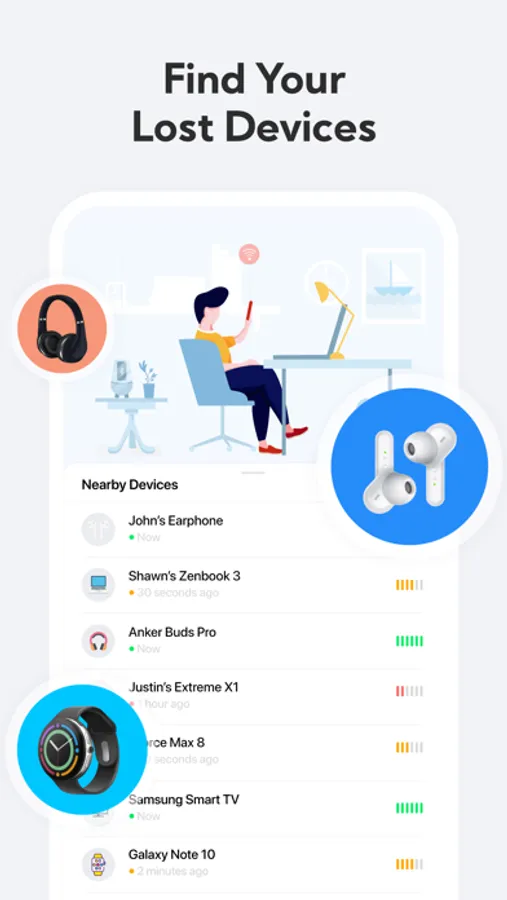 • When you get closer to the lost device, the app will play a sound which indicates that your device is nearby.