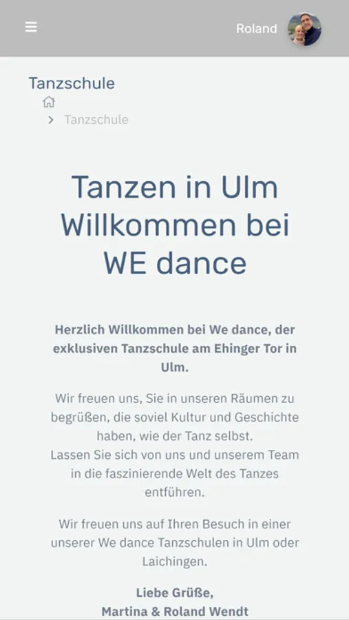 • sämtliche Informationen (Kontakt, Events, Rechtliches, etc.) über die Tanzschule abrufen