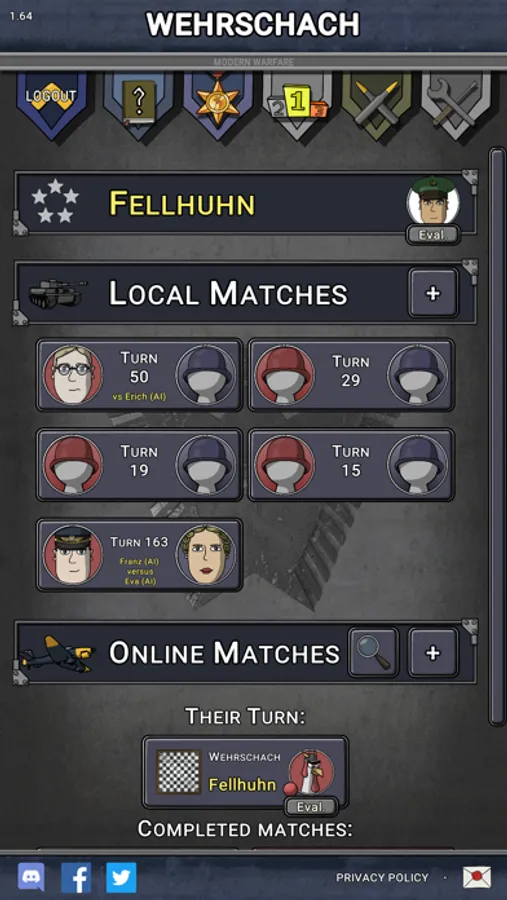 Online play requires the creation of an account with the Fellhuhn Online Service which is also used by our other games. With it you can unlock achievements as well as climb the ELO ranking to become a grandmaster of Wehrschach.