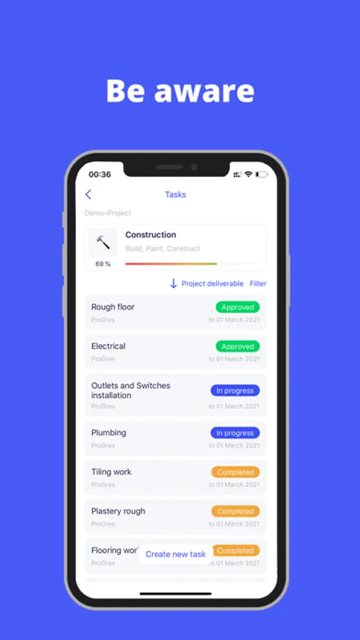 - Be aware of the work in real time: the application will remind you of current and future tasks