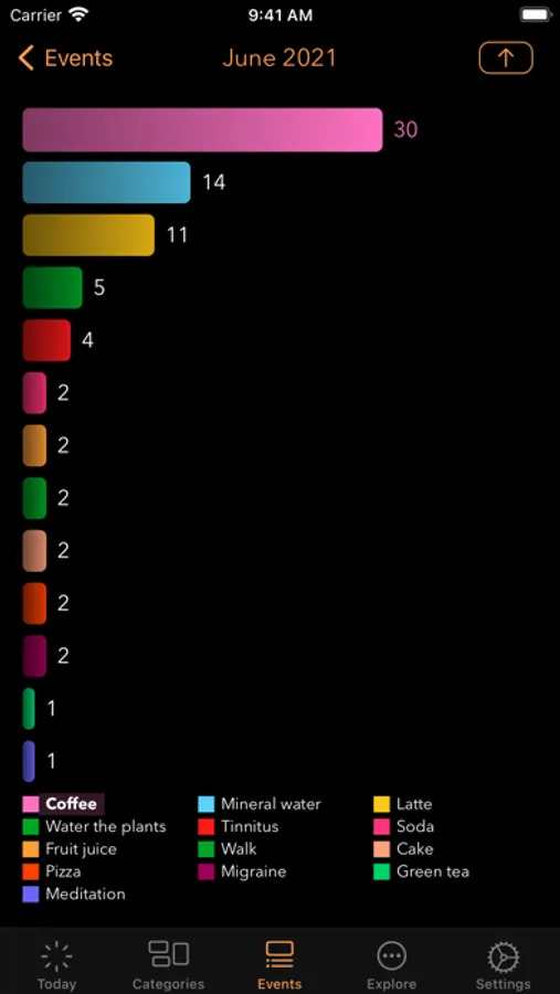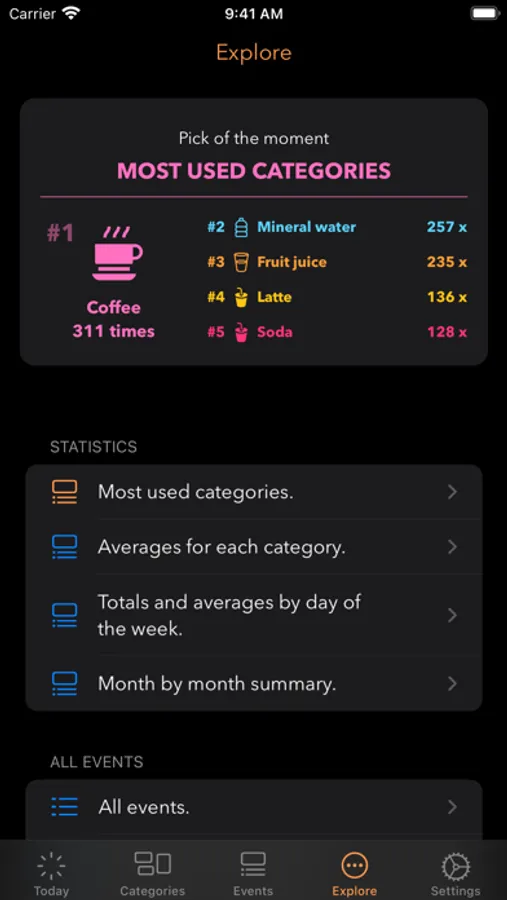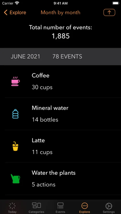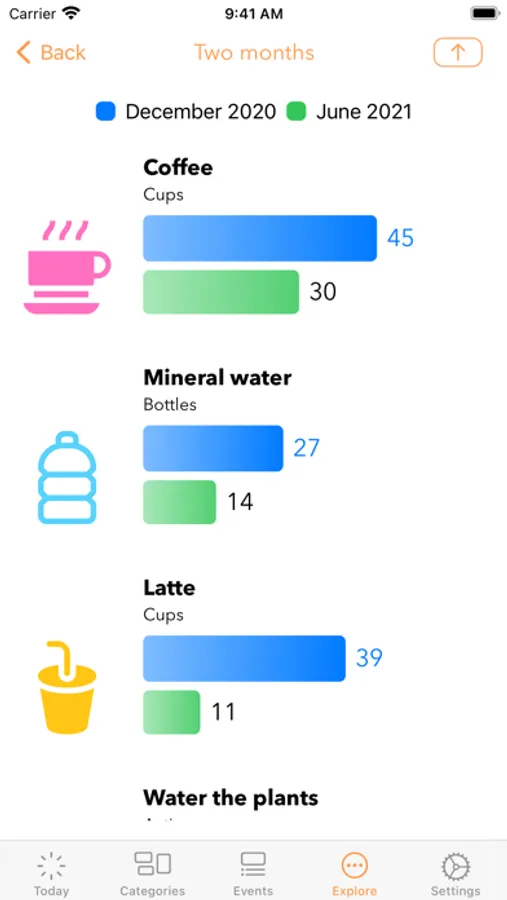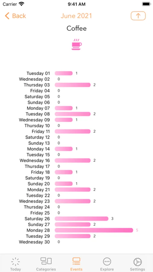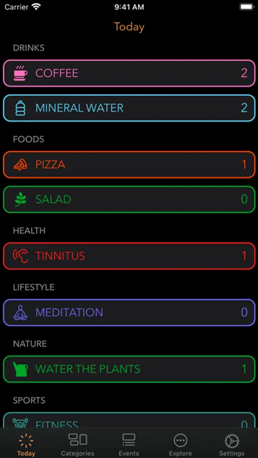 Tap on "Coffee" everytime you drink a coffee, for example, and Log A Day will remember everything forever.