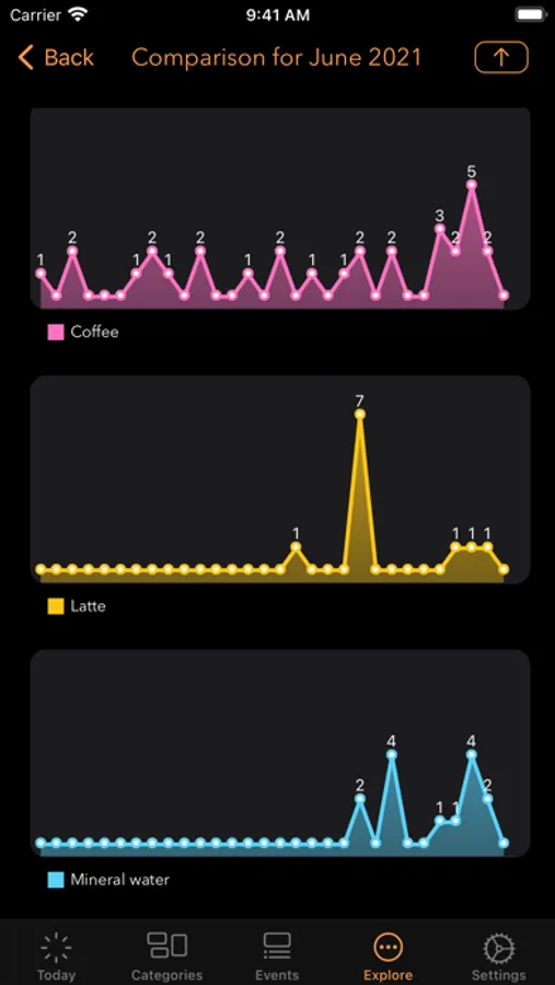 Log A Day is an habit-tracking app that gives you the detailed history of each recorded event, trends charts, statistics, monthly comparisons, etc.