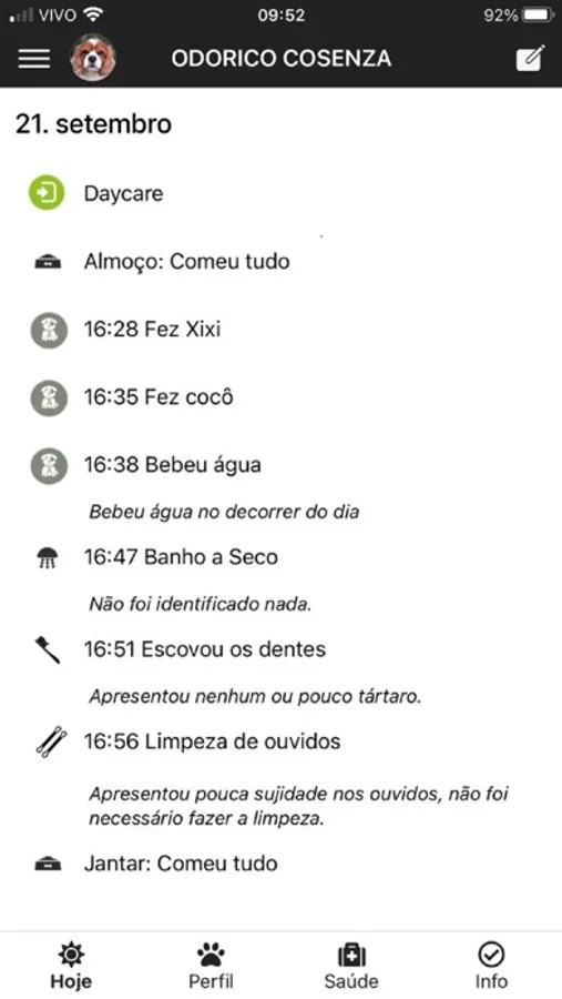 O App propicia aos tutores um acompanhamento das atividades e serviços realizados na creche em tempo real, bem como, a comunicação do momento de chegada para entregar ou retirar o pet e o controle de antipulgas, vacinas e exames.