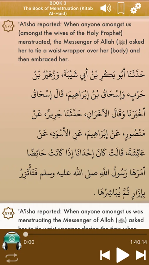 This application gives you the ability to read and to listen the 57 books of the "Sahih Muslim " on your Iphone / Ipad / Ipod Touch.