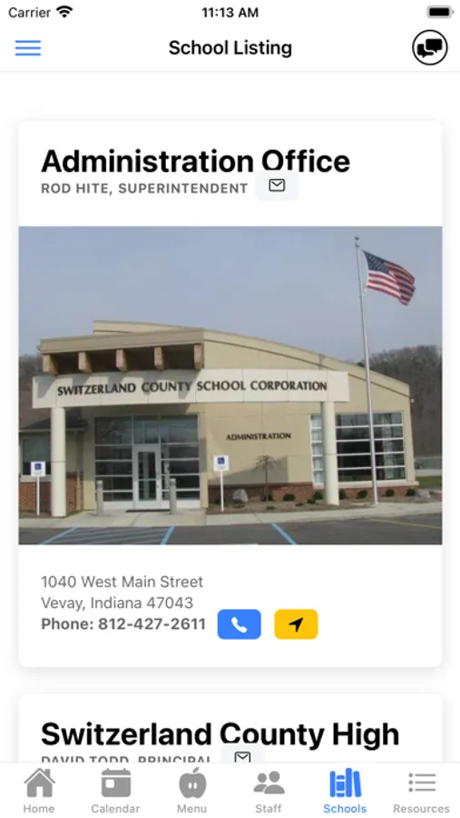 The Switzerland County School Corporation app for iPhone, iPod, and iPad allows student, faculty and parents to keep up to date with school communication. The app’s intuitive navigation provides quick access to the following: