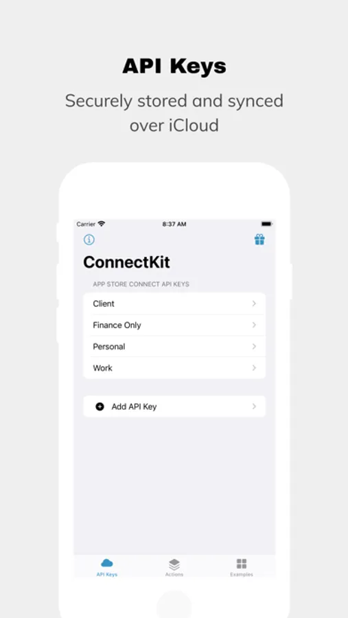 ConnectKit securely stores the App Store Connect API Key and syncs it over iCloud to your other devices.