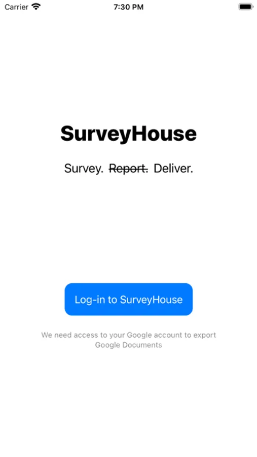 SurveyHouse speeds up your building surveying work. Survey directly from the app and SurveyHouse will generate beautiful reports for you.