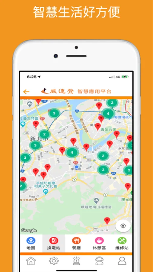 根據用戶所在位置,可搜尋附近的充電站,維修站,餐廳,休息區......等等,方便您的生活!