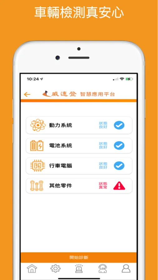 一鍵偵測電動車各系統狀況,不用進維修站也能檢測設備,讓您隨時知悉愛車的健康狀況!