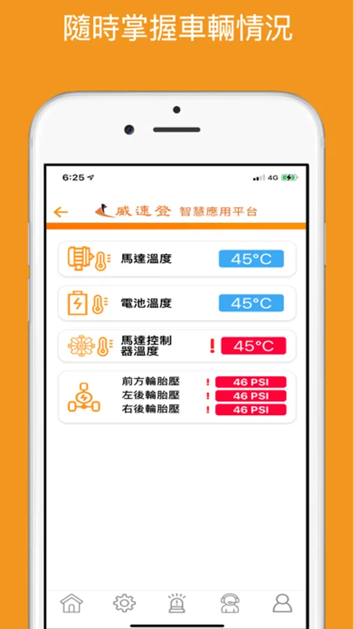 隨時注意設備安全,有狀況時即時回報提醒,讓您安全走透透!