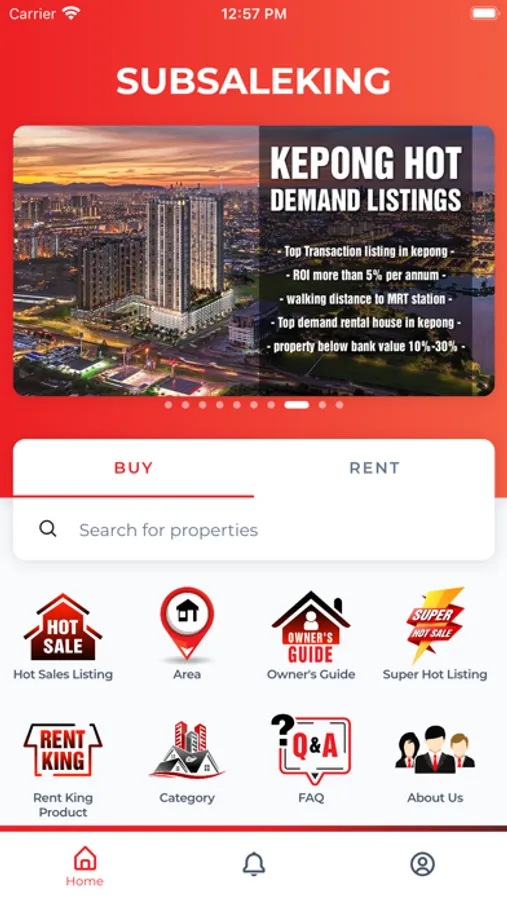 - Shortcut buttons such as “Area”, “Super Hot Listing” and “Category” allow users to search the listing based on area, trading price and property category.