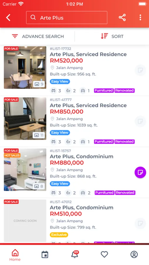 - All search property listing result can be filter with multiple search criteria in “Advanced Search”.