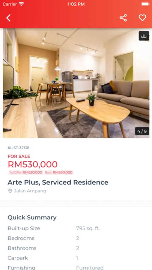 - All search property listing result with or without search criteria can be share via multiple apps depending on user device.