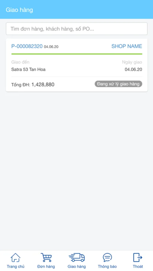 Ứng dụng quản lý giao hàng và đánh giá tiến độ giao hàng